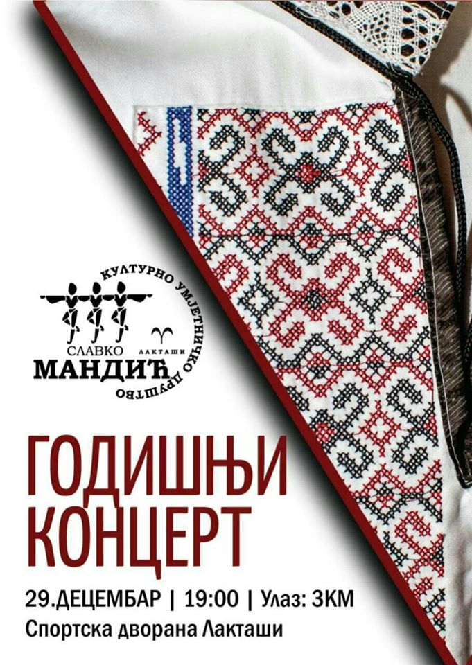 У недељу 29. децембра са почетком у 19.00 часова у Спортској дворани Лакташи одржаће се годишњи концерт културно - умјетничког друштава Славко Мандић.